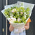 Jeder Strauß wird mit einem speziellen Mittel und einer Anleitung zur Verlängerung der Lebensdauer der Blumen geliefert.