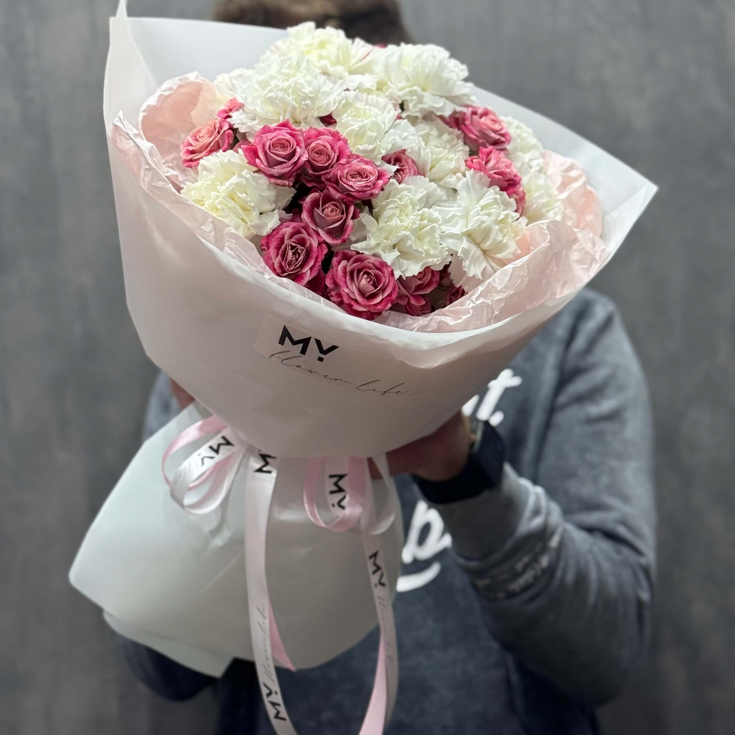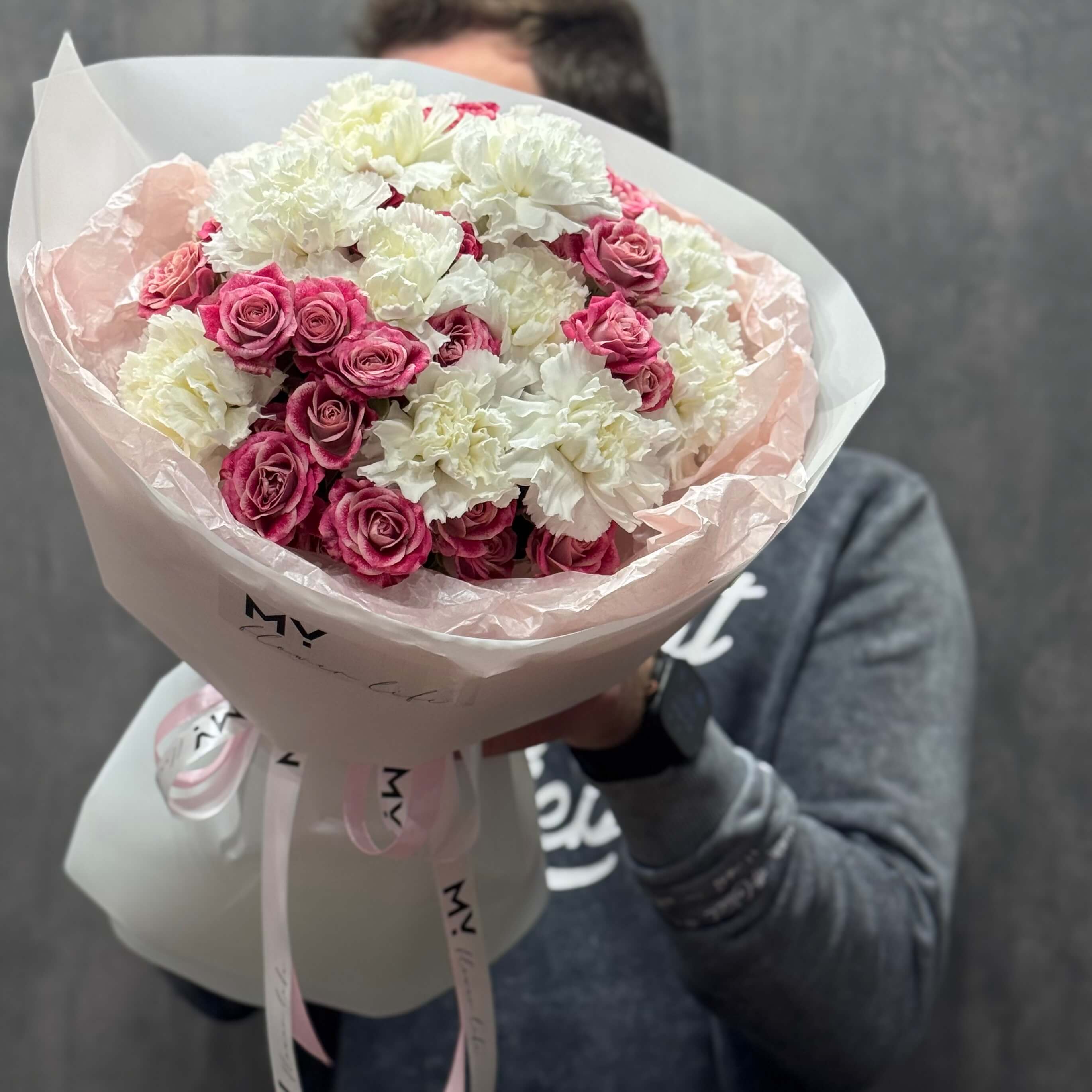 - M: 15 Nelken + 10 Spray Rosen / Hell Pink / Weiß - 69,00 €