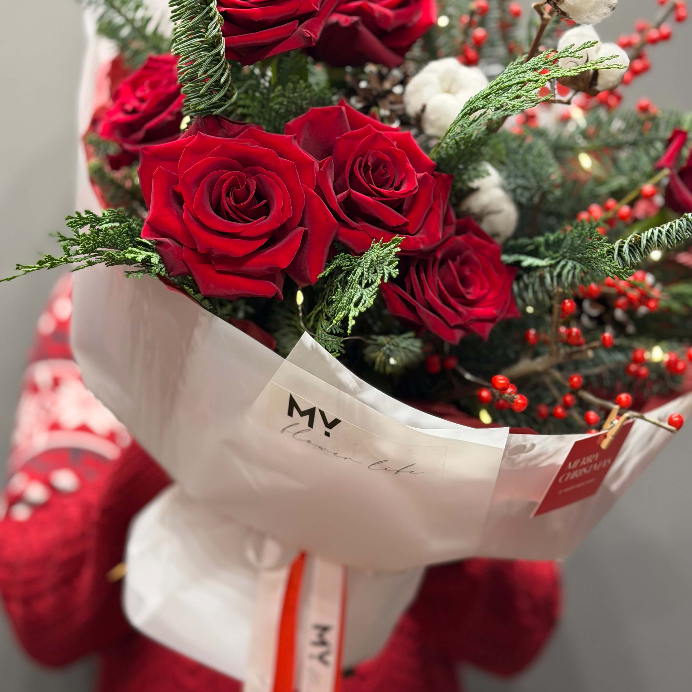 Jeder Strauß wird mit einem speziellen Mittel und einer Anleitung zur Verlängerung der Lebensdauer der Blumen geliefert.